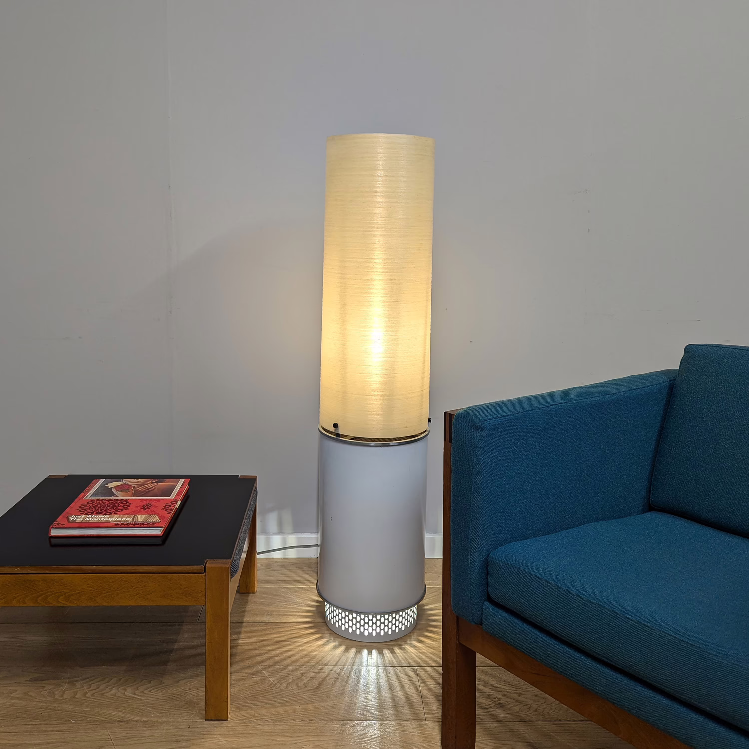 Formerly an old-fashioned, convection electric heater and light, this 1960s Belling ‘Apollo’ has been repurposed into a statement, double light floor lamp. Tall, rather industrial and sculptural, it looks both of its time and contemporary. The cylindrical spun fibreglass shade at the top gives a warm, golden glow. The lower lamp gives a brighter, white light that radiates out through the perforations at the base. A clever repurpose and restoration turning a blast from the past into a functional, handsome design piece for today’s homes.
