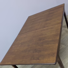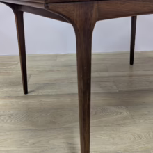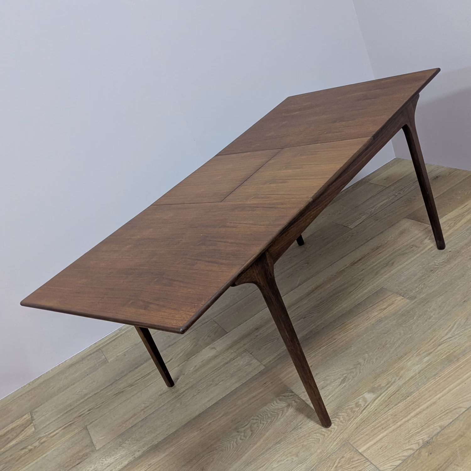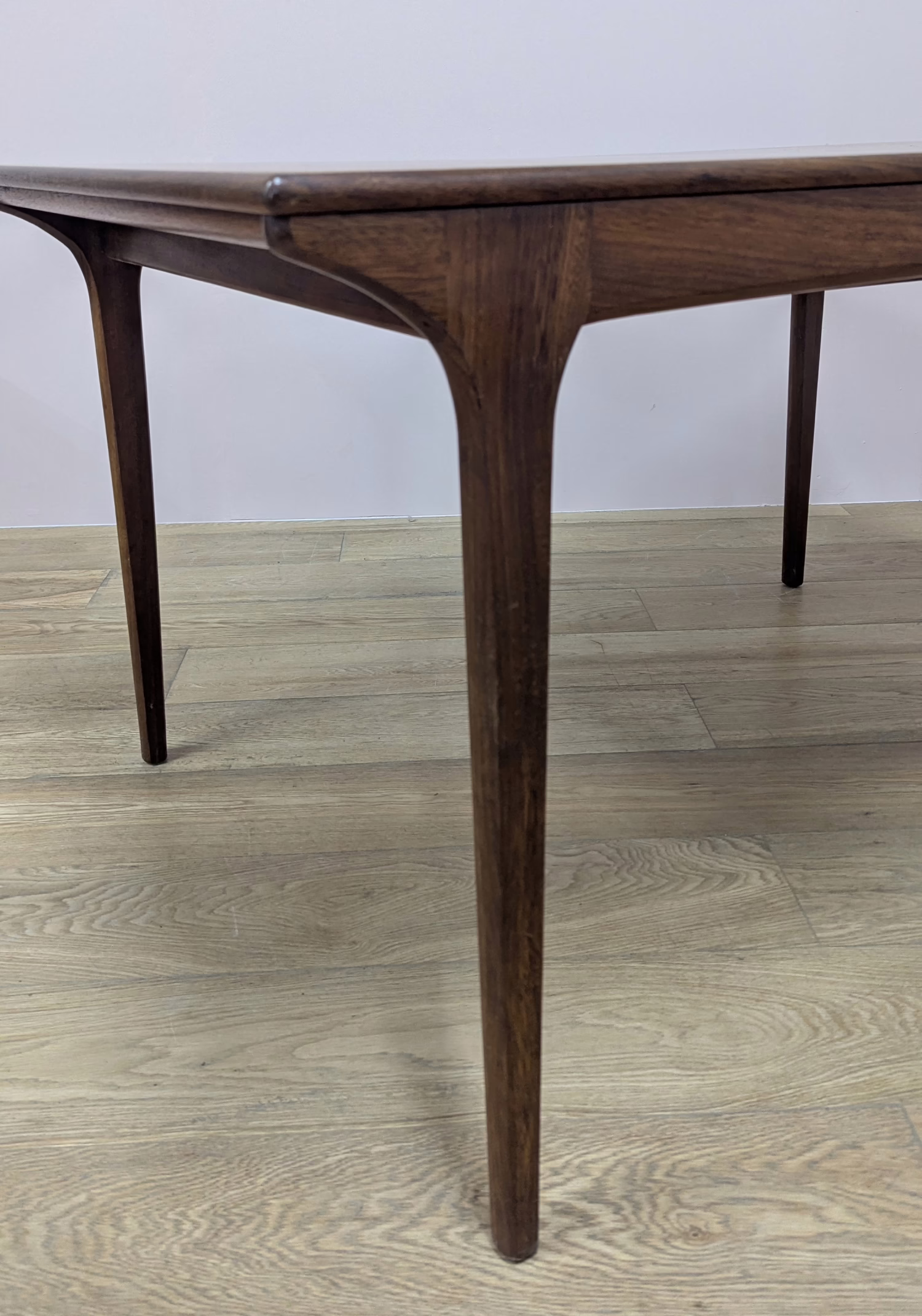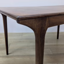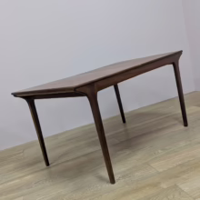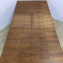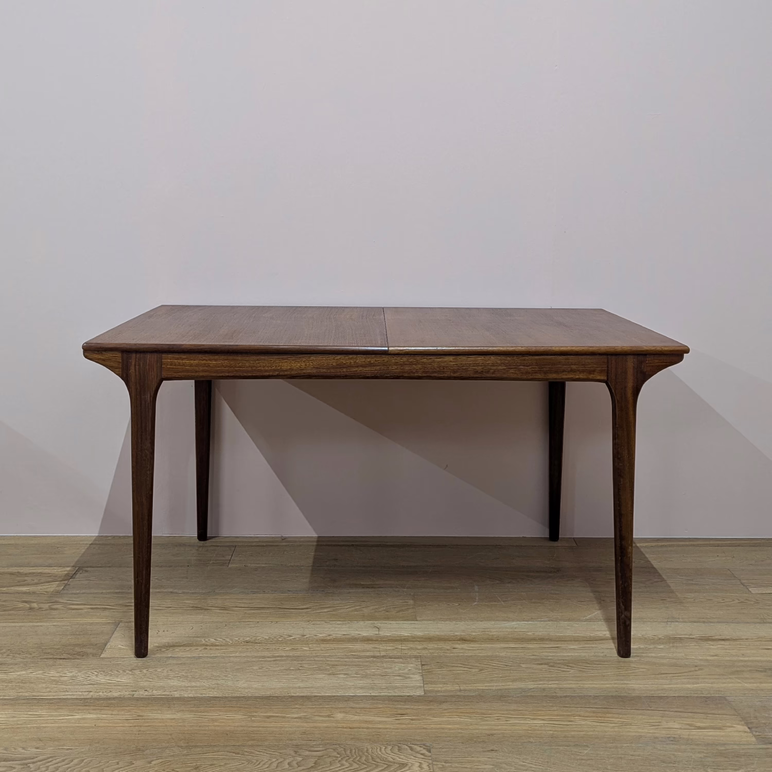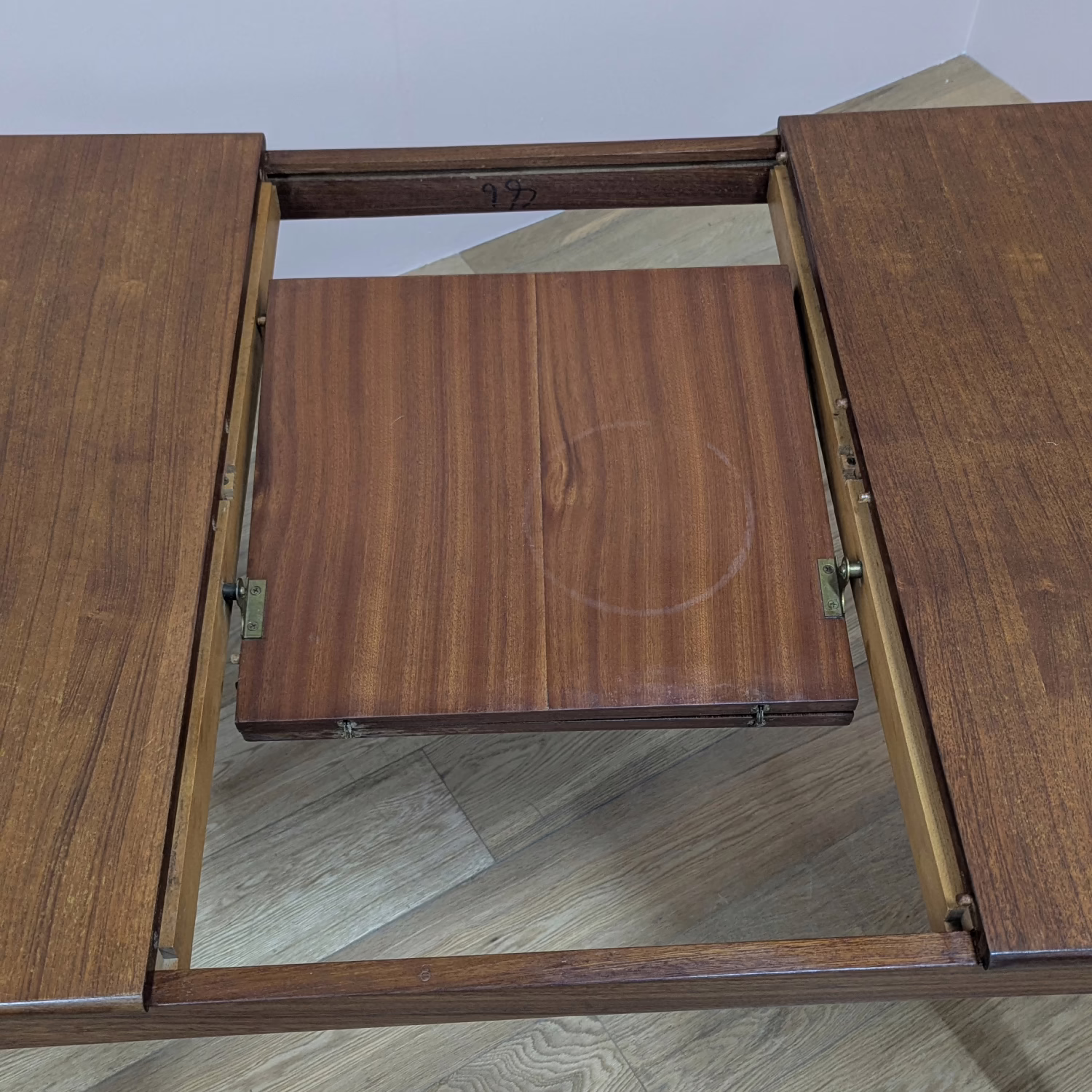 This is an original, vintage table that is ‘sold as seen’. It is in very good, used condition. We have thoroughly serviced this table and it has undergone a full restoration. This process involved carefully stripping away the original finish, followed by Osmo hard wax oil and polish for a durable finish. It’s in great refurbished order with just minor signs of wear and use. The table is extended by pulling apart the two sides to reveal the extra section integrated into the middle. This rotates, folds out and flattens into place and the two sizes are pushed back together for a seamless table top. All hinges and mechanisms are in very good working order. The table is stable and solid, a very well-made item with no repairs or areas of concern. There is no maker’s mark but we attribute it to McIntosh as it’s a well-documented design and the flattened outside edges of the legs are a signature feature of theirs. Please browse our photos for an accurate account of this item. Any queries, do get in touch.